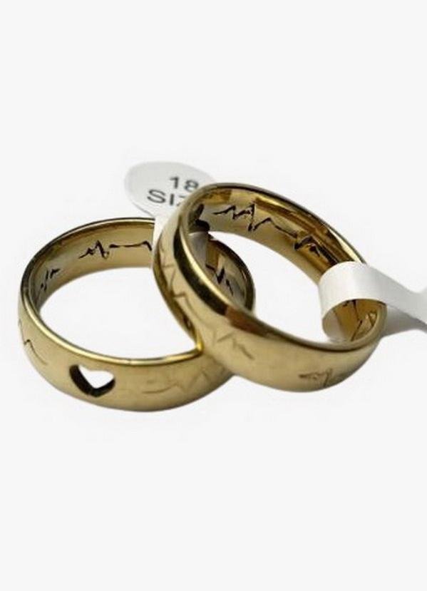 Aliança batimento de coração em aço inoxidável 316L dourada.