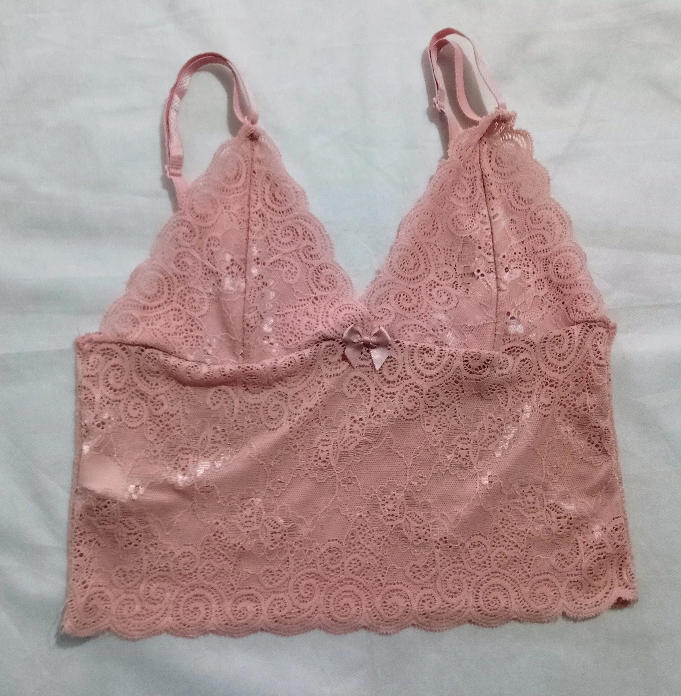 Sutiã Cropped Rendado Rosa