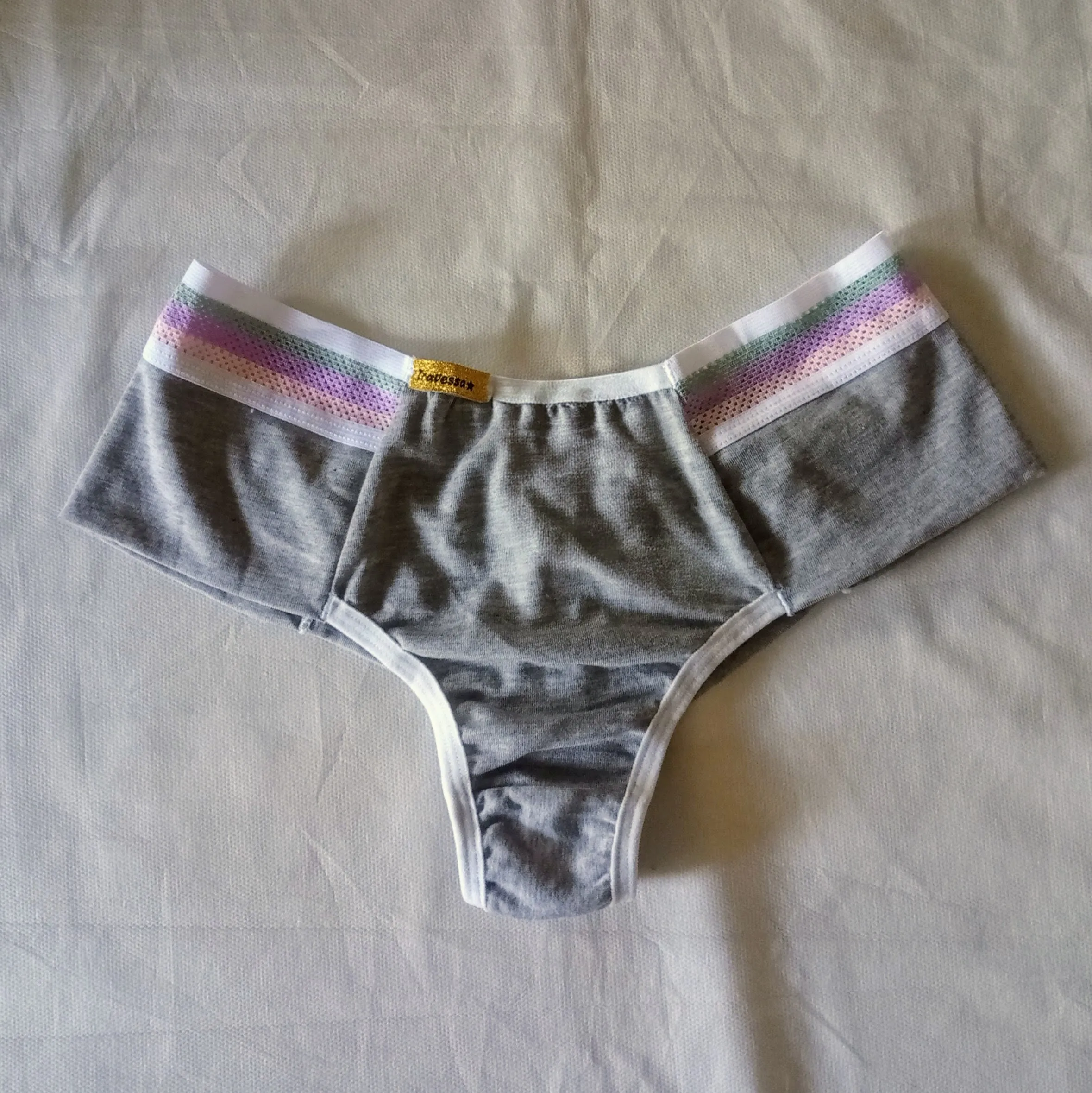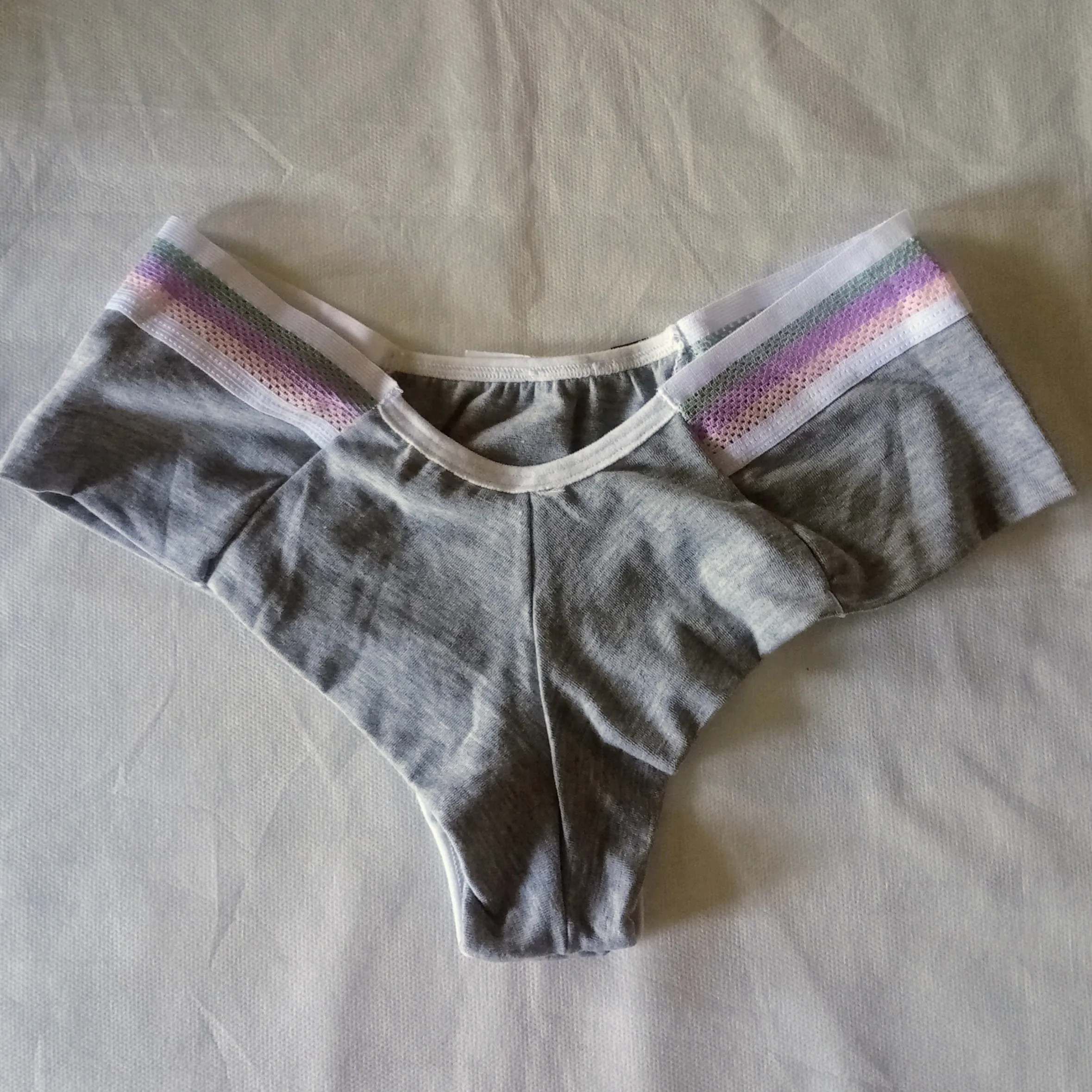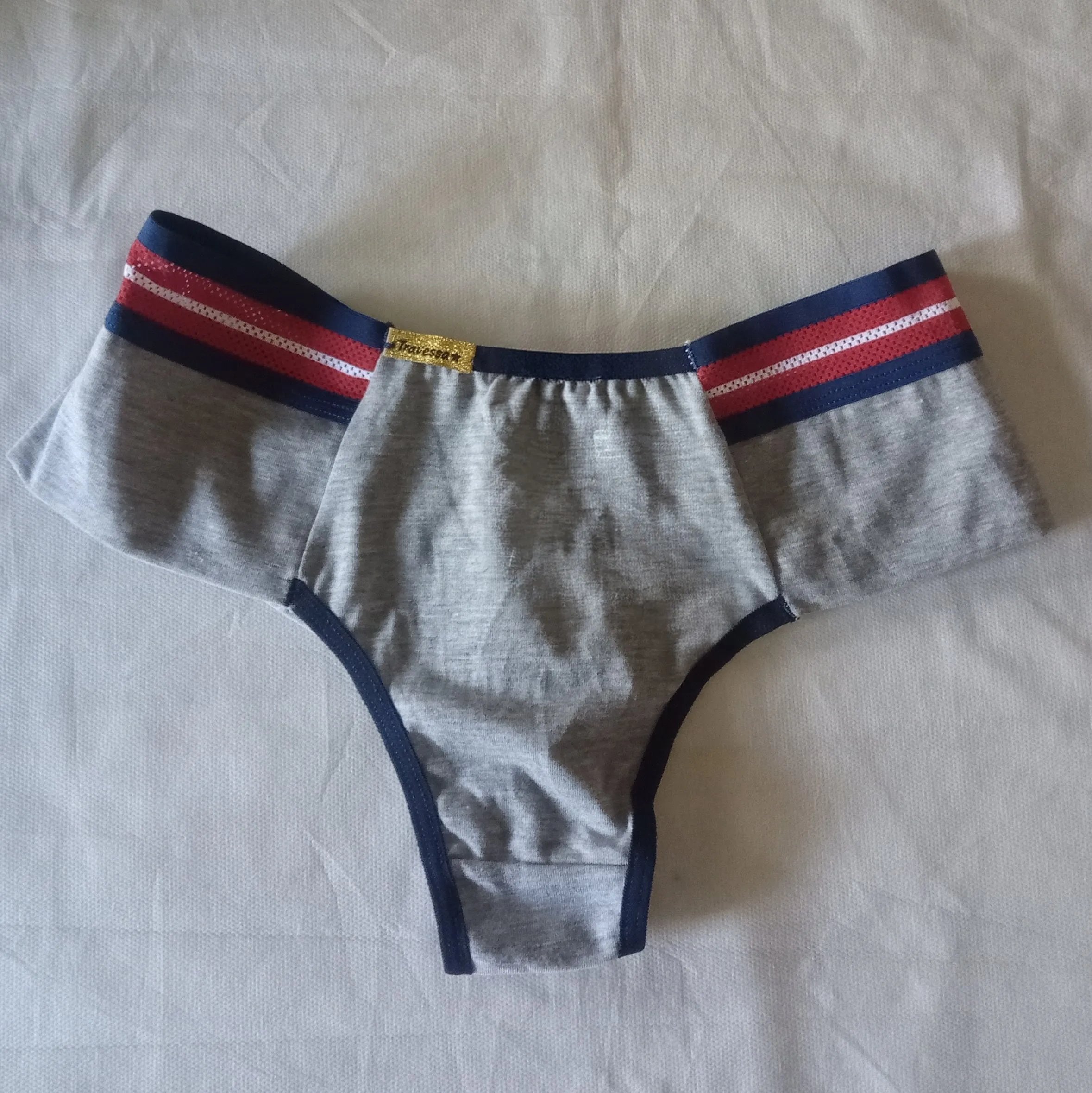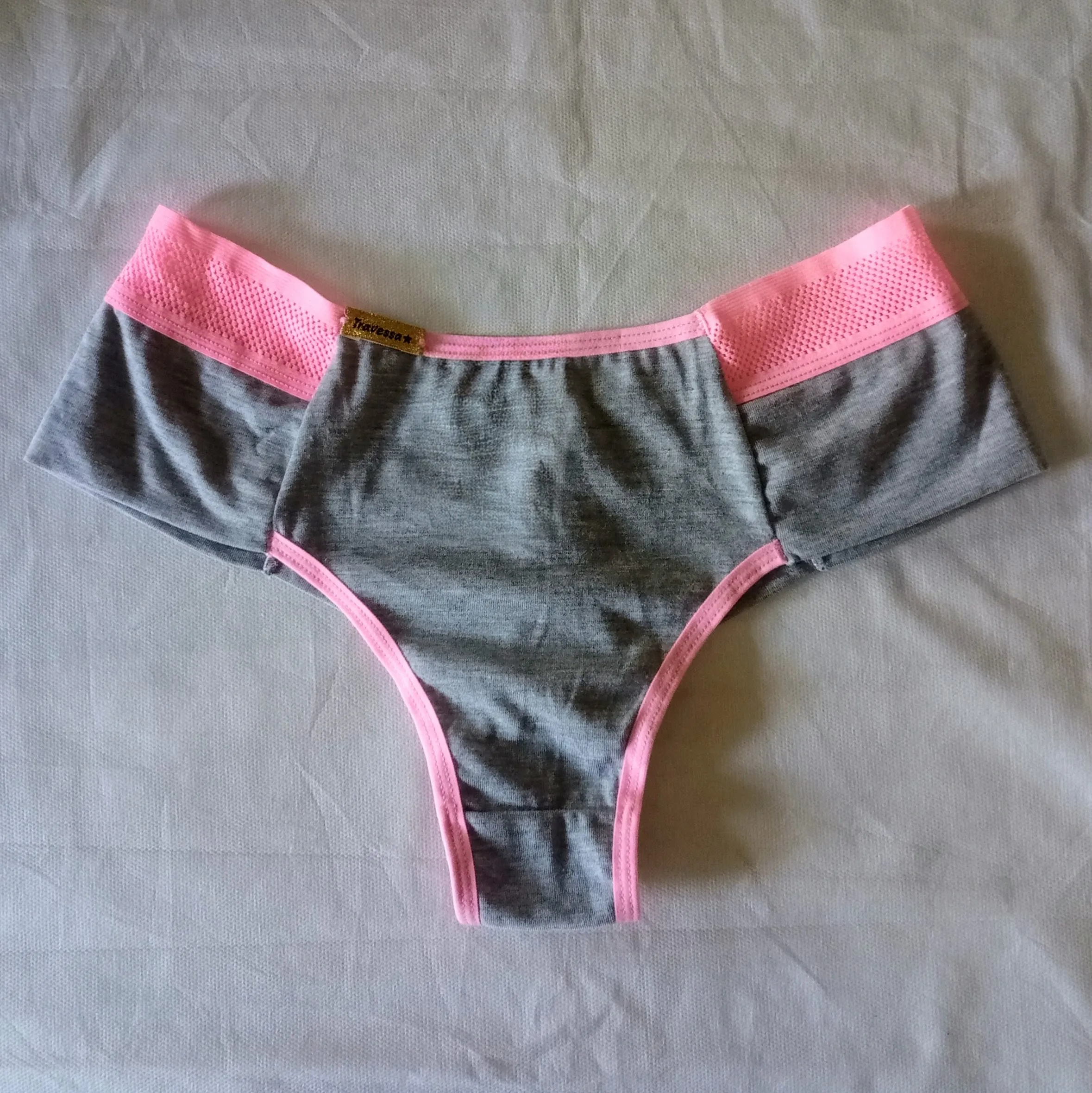As cavas das pernas têm um acabamento em viés escuro, oque ajuda a manter a elasticidade e a durabilidade da peça após várias lavagens. As costuras são reforçadas, oque aumenta a durabilidade da peça e evita irritações no uso prolongado.