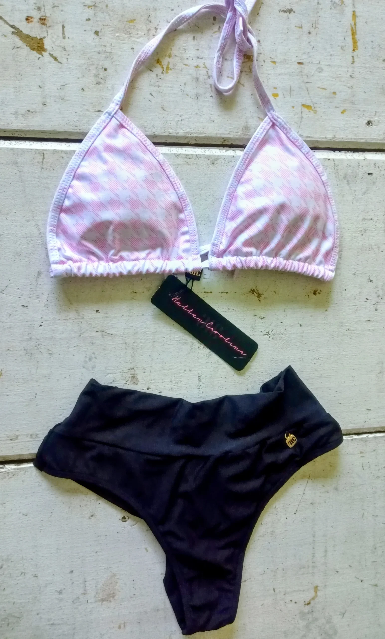 Biquíni Cortininha Pied-de-Poule Rosa e Calcinha Cós Largo Modeladora