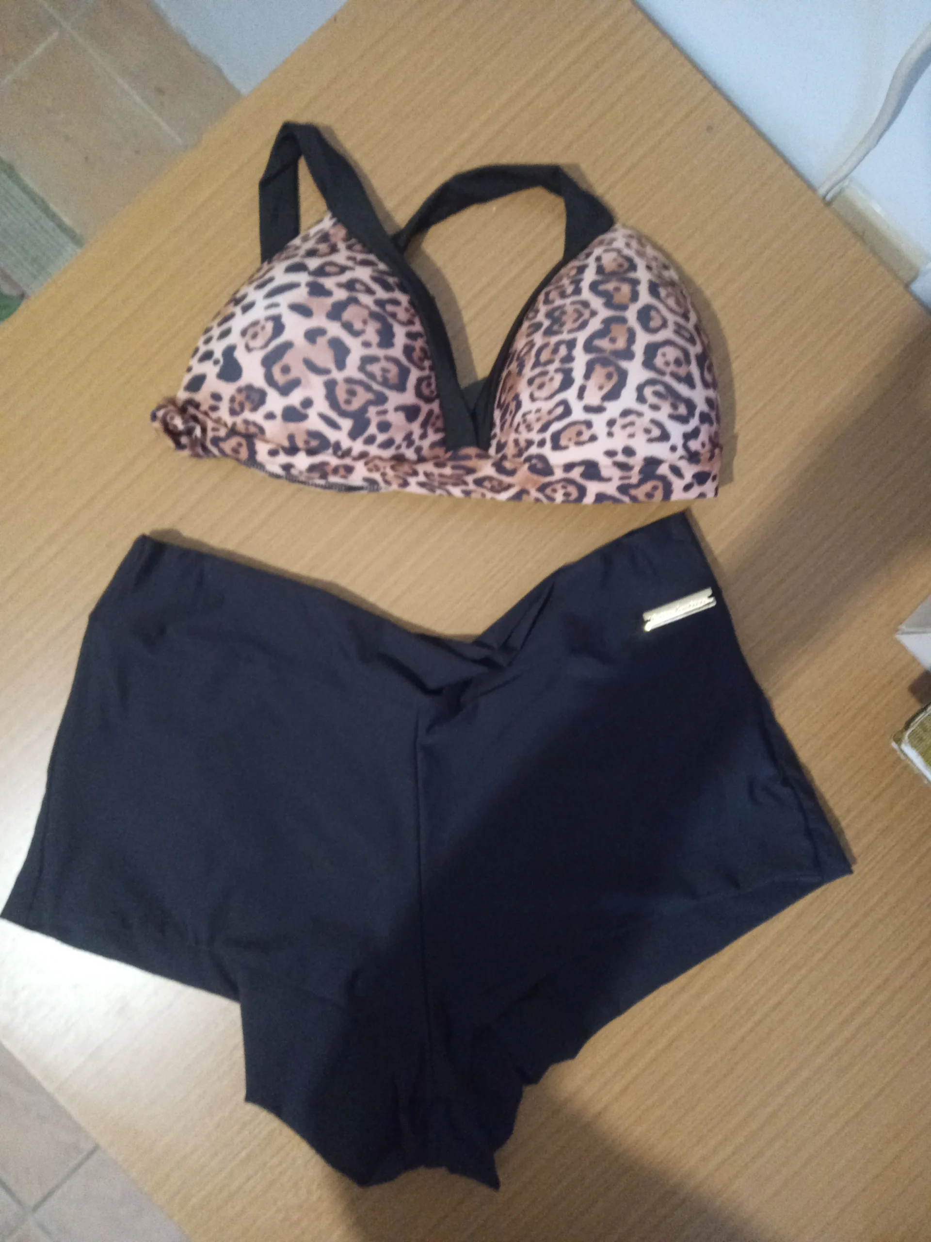 Cor/Estampa: Top de Onça Clássica / Calcinha Preta Lisa.