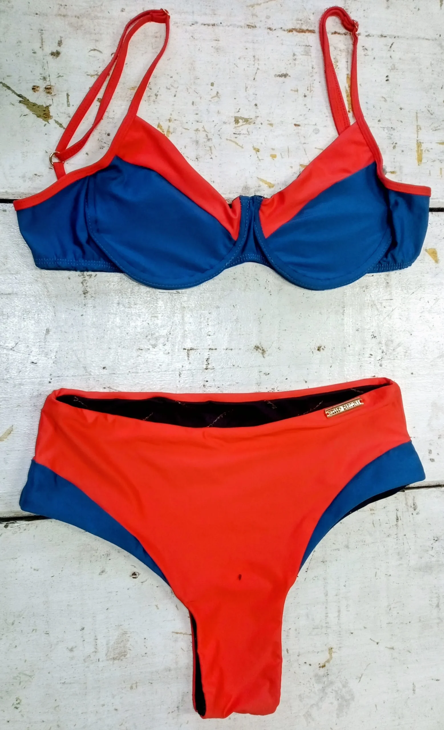 Prepare-se para navegar na elegância do estilo naútico moderno com o nosso Conjunto Santorini. Este biquíni bicolor foi projetado para a mulher que não abre mão de um visual impactante e busca o máximo de suporte. A combinação clássica do vermelho vibrante com o azul marinho traz um ar sofisticado e atemporal para os seus dias de sol.