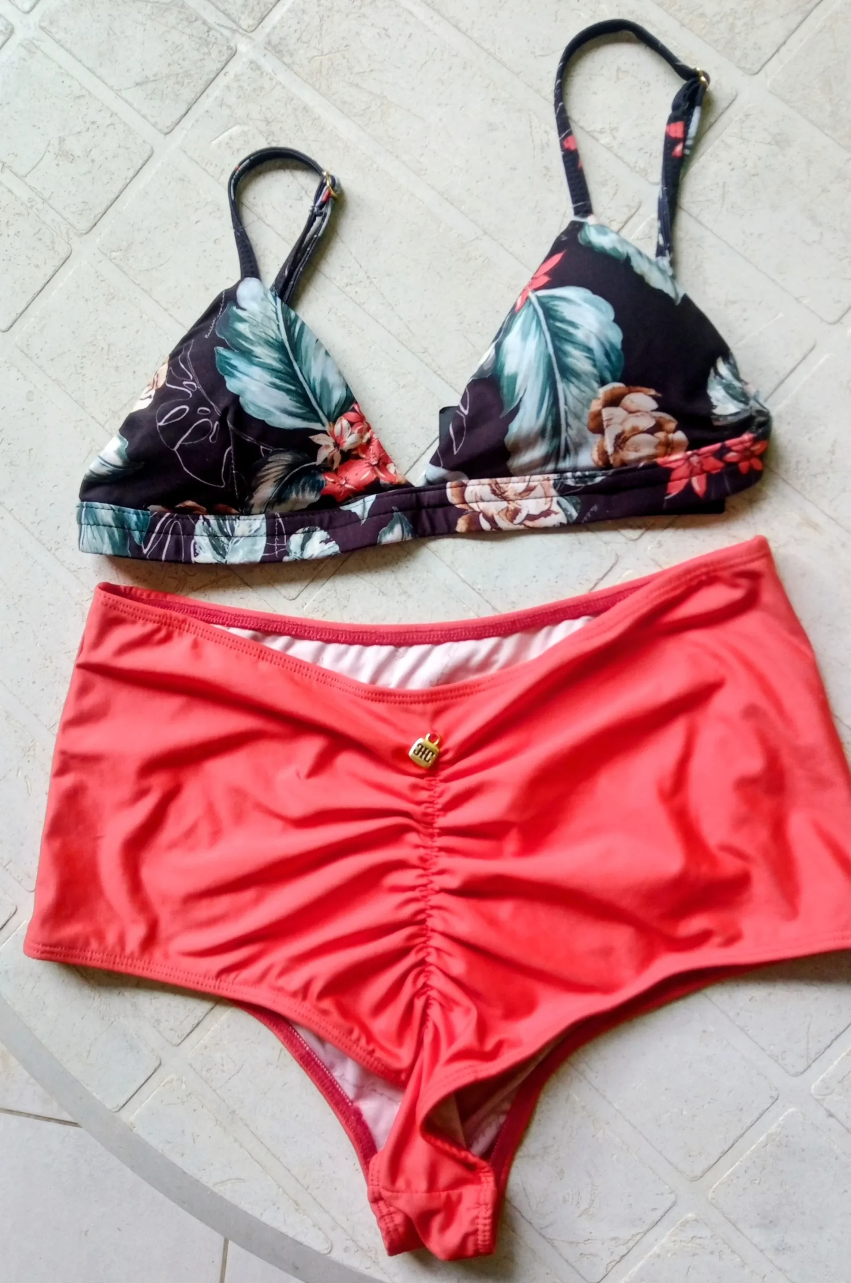 Combinação Solar: Mix de vermelho vibrante com estampa exclusiva floral.