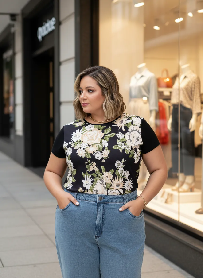 O importante é se sentir bonita e confiante com a Blusa Floral Preta Com Gota Nas Costas Plus Size, uma peça que une beleza, conforto e versatilidade em um só item. E o melhor de tudo é que essa peça pode ser encontrada em diversas lojas, tanto físicas quanto online, com opções de tamanhos variados e preços acessíveis.