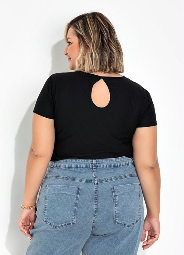 Blusa Floral Preta Com Gota Nas Costas Plus Size