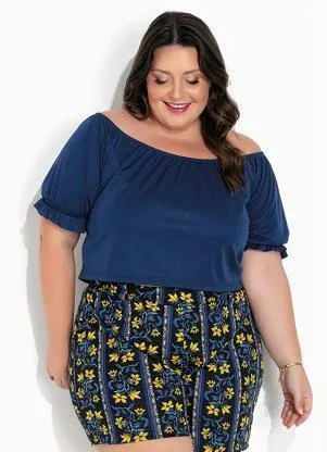Blusa Azul Marinho Ombro a Ombro Plus Size