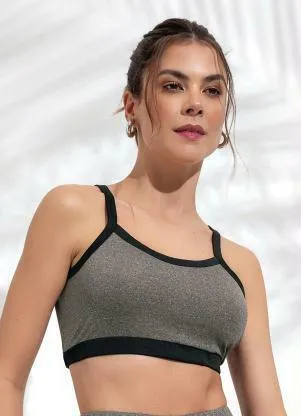Conforto que se adapta ao seu corpo com o estilo que você adora. O Top Cinza Preto de Alças apresenta um design clean na frente em cinza mescla com contornos pretos, e uma surpresa nas costas: alças transpassadas e uma modelagem super charmosa.